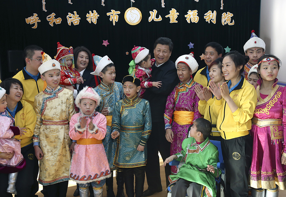 2014年1月28日,習(xí)近平來到呼和浩特市兒童福利院看望孩子們。新華社記者 龐興雷 攝